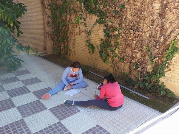 En el patio de nuestro colegio Vélez de Guevara ahora crece un precioso Ombú bellasombra y el fresno que tenía sus raíces asfixiadas por el cemento ya respira bien. El día 7 de diciembre estuvimos ilustrando el trabajo en el patio con estos dibujos donde podemos ver a las chicas de Cuartocrecient